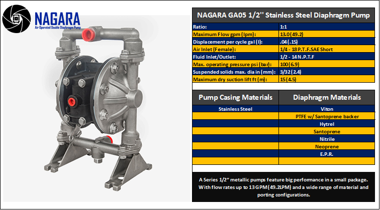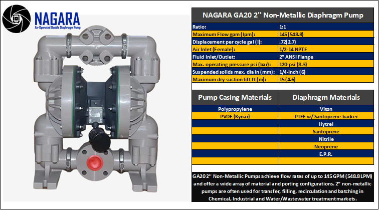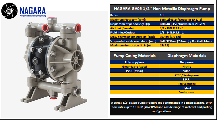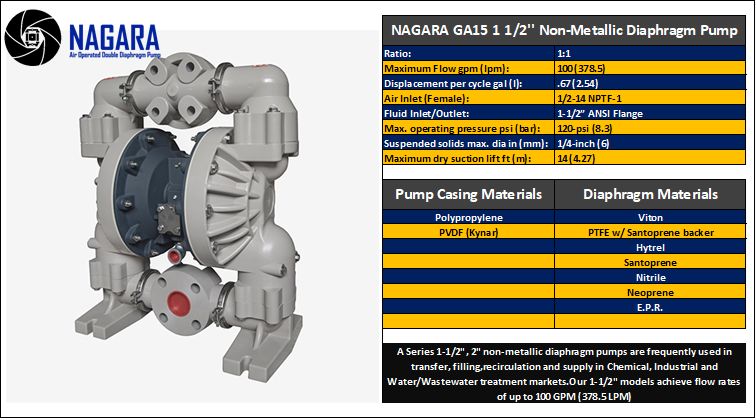Air-Operated Design: Nagara AODD pumps are powered by compressed air, making them suitable for use in environments where electrical pumps may be hazardous. This feature also allows for easy operation and control of flow rates.